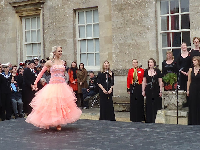 And after the poignancy of the Remembrance Service came an unexpected interlude of joyful exuberance. Crowds gathered at the front of Lydiard House where the ladies of the Military Wives Choir shed their coats and braved the elements to sing again while Strictly Come Dancing stars Anton du Beke and Kristina Rihanoff danced.